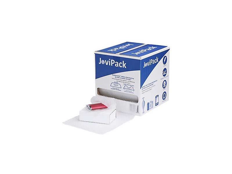 Film bulles AirCap® en boîte distributrice, présenté en formats prédécoupés pour une utilisation simple et mobile. Idéal pour la protection des produits lors de l’emballage.