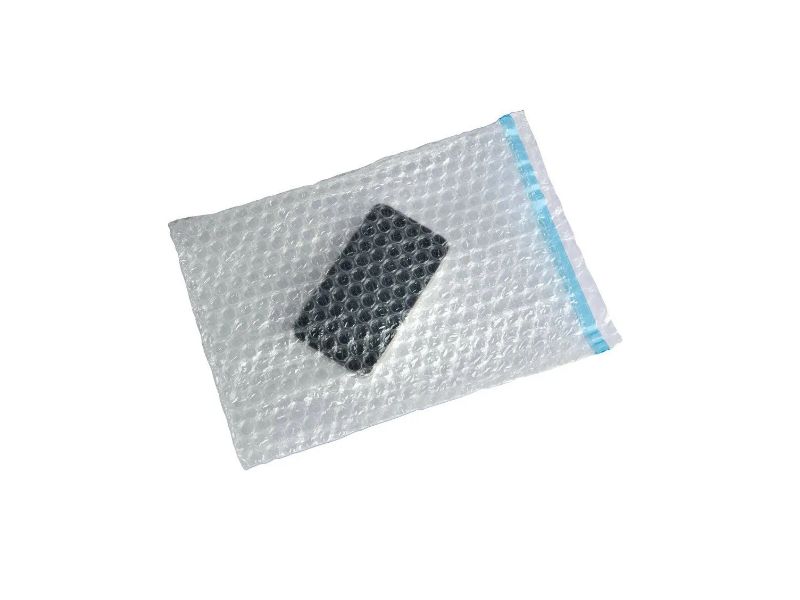 Sachets plats à patte adhésive, avec bulles recouvertes d’un film à l’intérieur pour faciliter le remplissage et protéger efficacement le contenu.